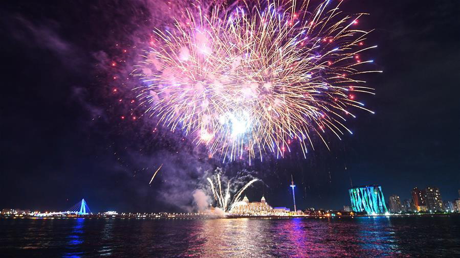 9月23日在淡水漁人碼頭拍攝的煙花秀。當(dāng)日,臺(tái)灣淡水漁人碼頭舉辦煙花秀,迎接中秋佳節(jié)。 新華社記者 金良快 攝