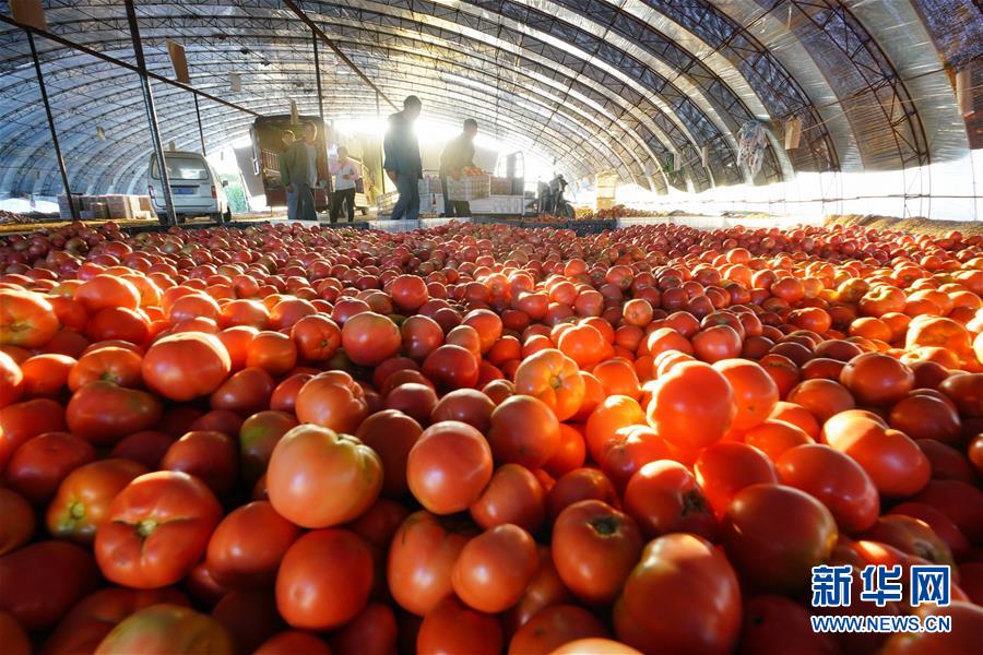 9月23日,河北省灤縣小馬莊鎮郎紅棚菜專業合作社的農民在整理收獲的西紅柿。