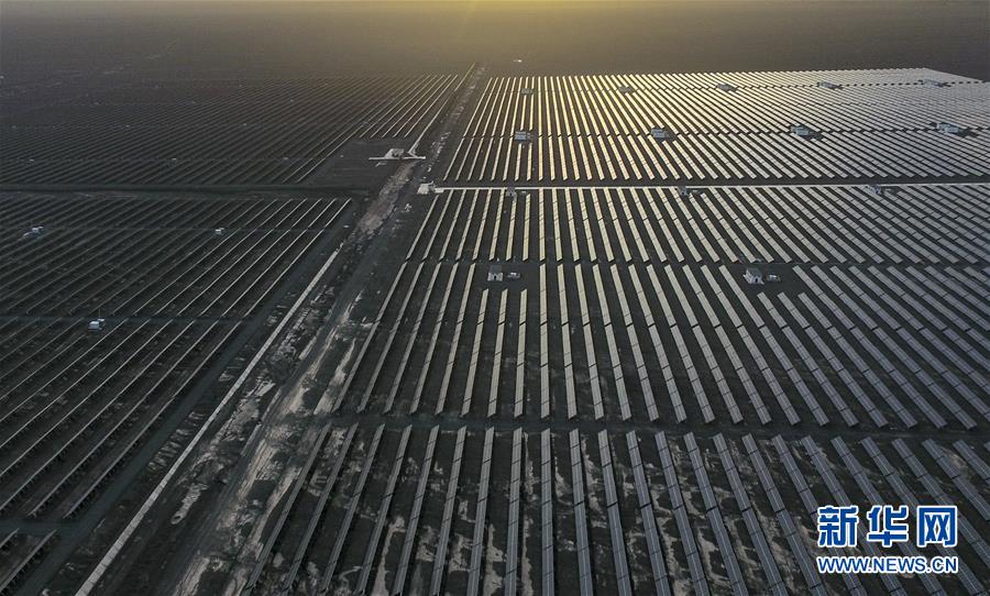 從空中俯瞰吐魯番市七泉湖光伏電站(9月18日無人機拍攝)。新華社記者趙戈 攝