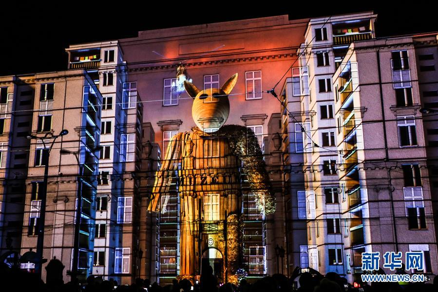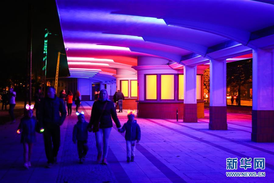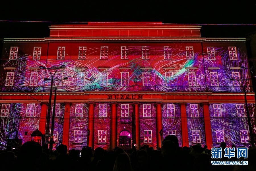 這是9月28日在波蘭羅茲市中心拍攝的2018“舞動”燈光節現場。2018“舞動”燈光節于9月28日至30日在波蘭中部交通樞紐城市——羅茲市舉行,各式各樣的光影表演在這座城市的各個角落同時上演,組成了一場如夢如幻的大型燈光秀。新華社記者陳序攝