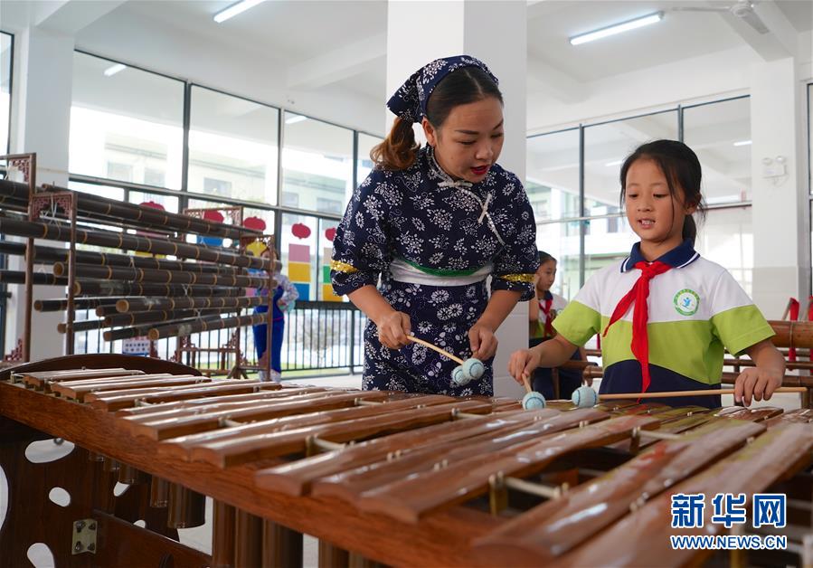 10月8日,崇義縣竹樂樂團的演員在教學生演奏竹板琴。 近年來,江西省崇義縣思源實驗學校定期開設竹樂課,邀請崇義縣竹樂樂團的演員教授學生演奏竹排琴、竹板琴等竹樂樂器,激發(fā)學生了解傳統(tǒng)文化的熱情。 新華社記者胡晨歡攝