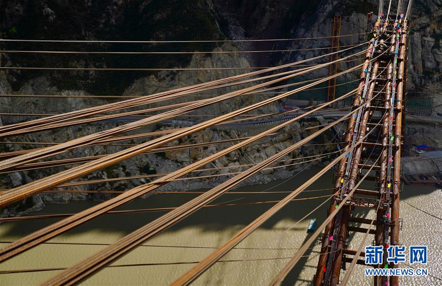 9月28日拍攝的川藏鐵路拉林段重點標志性工程藏木特大橋。 當日,隨著最后一節鋼管拱的對位和鎖定完畢,川藏鐵路拉林段藏木特大橋成功合龍,標志著大橋主體結構施工取得了關鍵性勝利。藏木特大橋由中國中鐵廣州局集團承建,拱高112米,橋橫跨雅魯藏布江峽谷,水深66米。 新華社記者普布扎西攝