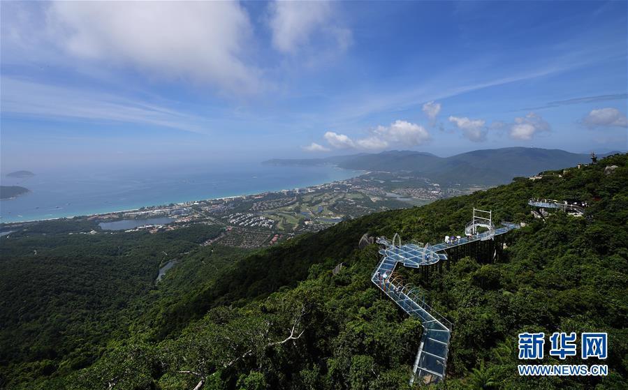 8月31日,游客在玻璃棧道上參觀游覽。近日,位于海南省三亞市亞龍灣熱帶天堂森林公園的大佛石全海景玻璃棧道開始正式營(yíng)業(yè)。凌空而建的玻璃棧道全長(zhǎng)400米,游客可將亞龍灣的美景盡收眼底。新華社記者郭程攝