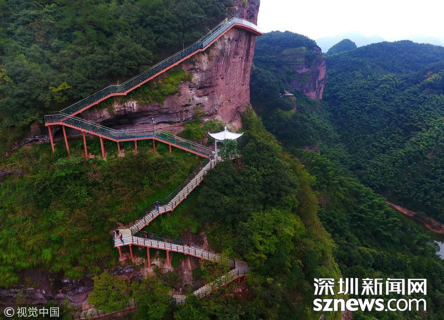 浙江金華武義懸崖峭壁造景觀 驚險玻璃棧道掛高空