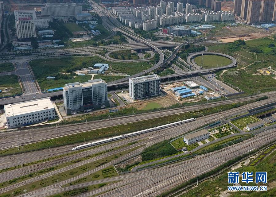 這是“零換乘”立體綜合交通樞紐——廣西南寧東站(9月4日無人機拍攝)。 廣西壯族自治區成立60年來,鐵路建設發生翻天覆地的變化。來自中國鐵路南寧局集團有限公司的數據顯示,1958年廣西鐵路總里程為1346.3公里,如今廣西鐵路總里程達5191公里。廣西與周邊相鄰省份間實現動車“公交化”開行。此外,北部灣港—重慶班列、東盟海產品冷鏈班列、“百色一號”果蔬專列等的開通和運營,強化了鐵路供給的針對性和有效性。鐵路成為助推廣西經濟社會快速發展的“大動脈”。 新華社記者陸波岸攝