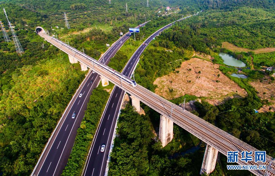 這是2016年10月11日無人機拍攝的海南環島高鐵東線三亞段。新華社記者 楊冠宇 攝