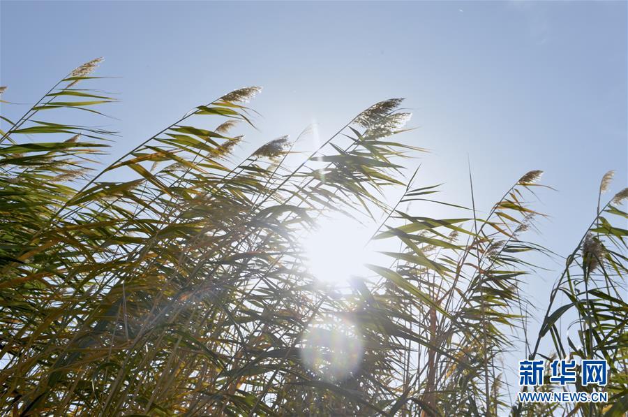 這是10月16日在敦煌西湖國家級自然保護區拍攝的蘆葦。 新華社記者 李笑 攝