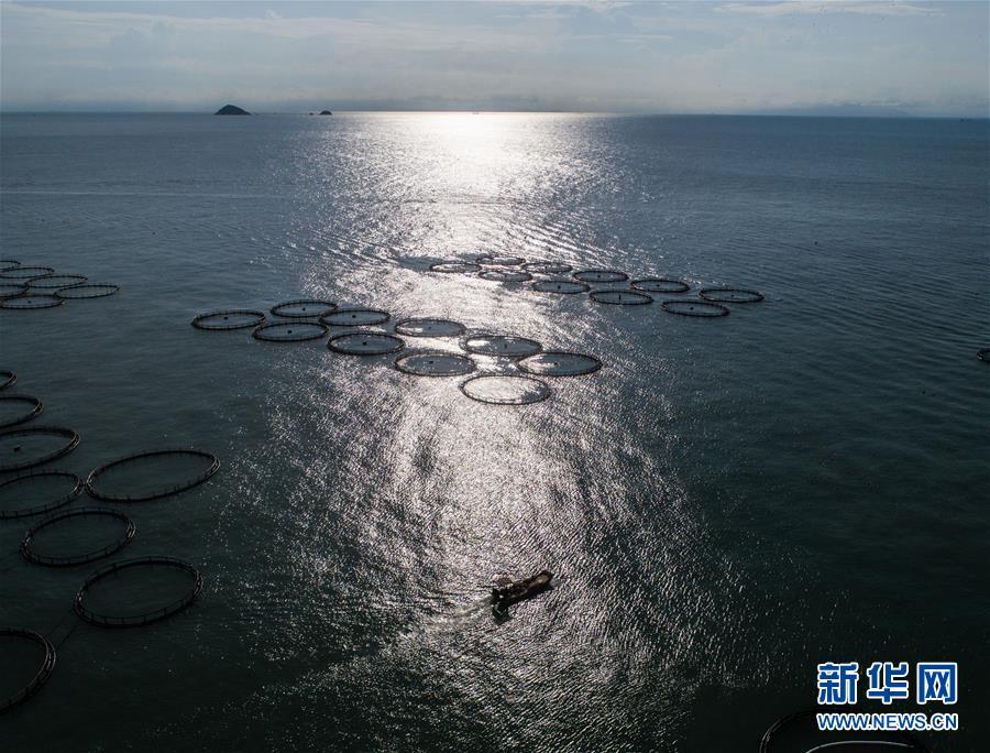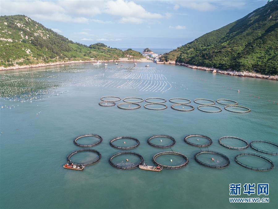 8月18日,南麂島馬祖岙海域的“海上牧場”養殖區(無人機拍攝)。南麂島位于浙江東南海域,水質好,水溫、鹽度都適合大黃魚等養殖魚類的生長繁殖,因此當地的水產品也一直保持了較高的品質和口碑。進入8月,浙江省溫州市平陽縣南麂鎮海域上大片的大黃魚、貽貝等特色海產品養殖區域迎來豐收季節,養殖戶們駕駛漁船在養殖區海域進行打撈收獲,在碧海藍天下構成了一幅“海上牧場”的美麗豐收景象。近年來,南麂鎮政府引導漁民養殖戶充分發揮“靠海吃海”的資源優勢,大力發展海洋養殖經濟和海島旅游經濟,實現了南麂由“生態美”向“產業美”,“產業美”向“經濟美”的轉變。同時該鎮堅持以大黃魚、貽貝等為特色產業支撐,精準發展高效海洋養殖業,重點培養一批新型職業漁民,依靠專業技術支持,實現深海仿生養殖,讓好生態造就好品質,重點打造南麂養殖品牌,組建營銷網絡,拓展特色海產品市場。新華社記者 徐昱攝