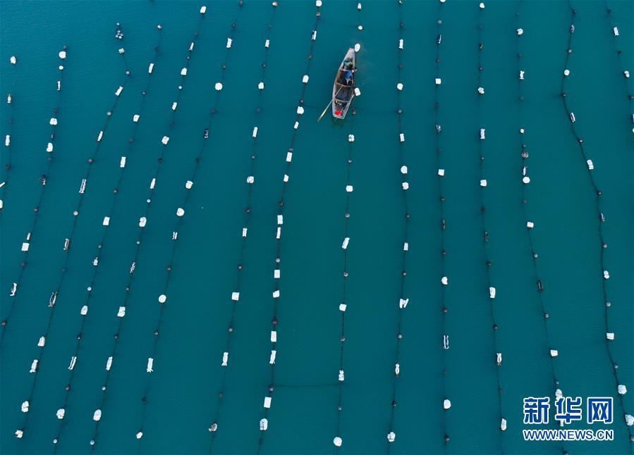 8月18日,南麂島馬祖岙海灣內,養殖戶乘船在貽貝養殖區內作業(無人機拍攝)。進入8月,浙江省溫州市平陽縣南麂鎮海域上大片的大黃魚、貽貝等特色海產品養殖區域迎來豐收季節,養殖戶們駕駛漁船在養殖區海域進行打撈收獲,在碧海藍天下構成了一幅“海上牧場”的美麗豐收景象。近年來,南麂鎮政府引導漁民養殖戶充分發揮“靠海吃海”的資源優勢,大力發展海洋養殖經濟和海島旅游經濟,實現了南麂由“生態美”向“產業美”,“產業美”向“經濟美”的轉變。同時該鎮堅持以大黃魚、貽貝等為特色產業支撐,精準發展高效海洋養殖業,重點培養一批新型職業漁民,依靠專業技術支持,實現深海仿生養殖,讓好生態造就好品質,重點打造南麂養殖品牌,組建營銷網絡,拓展特色海產品市場。新華社記者 徐昱攝