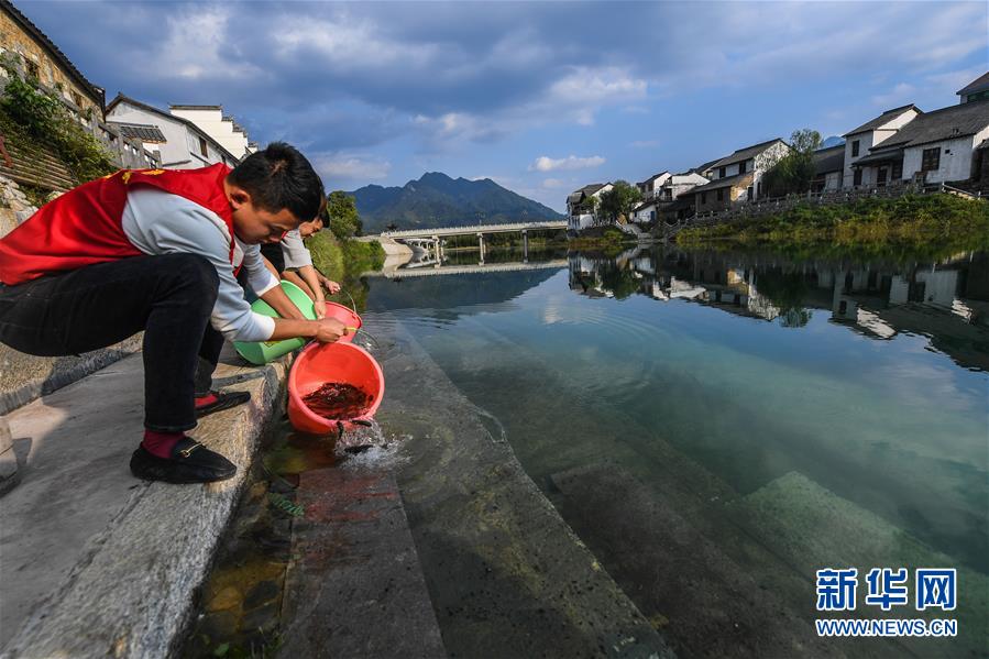 近期,浙江省杭州市臨安區河橋鎮積極推進基層黨建工作,組織青年黨員成立鄉村“護河隊”,通過開展沿街發放宣傳資料、定期清理沿河兩岸衛生、投放魚苗等一系列活動,廣泛推動基層鄉村“五水共治”,全面提升鄉村河道水環境質量,助力美麗鄉村建設。 新華社記者 徐昱 攝