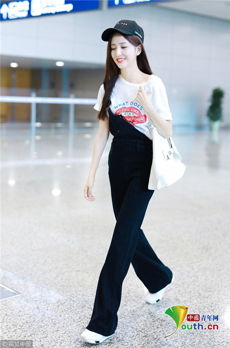 近日,佟麗婭現身機場,棒球帽下一頭黑色長發飛揚,告別驚艷的短發造型重回長發女神的行列,當天她身穿白T搭配背帶褲,滿滿青春活力,墊腳比剪刀手,小動作可愛炸!