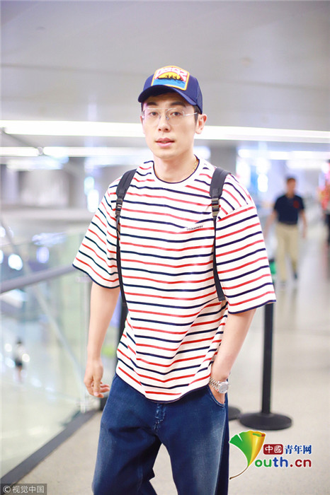 2018年10月22日,上海,朱亞文現身機場。他頭戴棒球帽,身穿條紋短袖搭配休閑哈倫褲顯得年輕又時尚,立減十歲大叔變潮男,單手插袋抿嘴略顯痞氣。