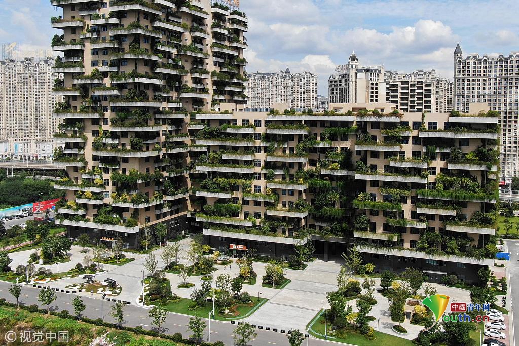 “植物建筑”和周邊建筑形成鮮明對比。