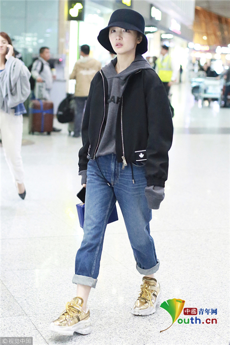 近日,周冬雨現身機場,她穿黑色夾克配牛仔褲,男友風造型顯嬌小玲瓏,漁夫帽遮去大半邊臉,簡直小朋友既視感!