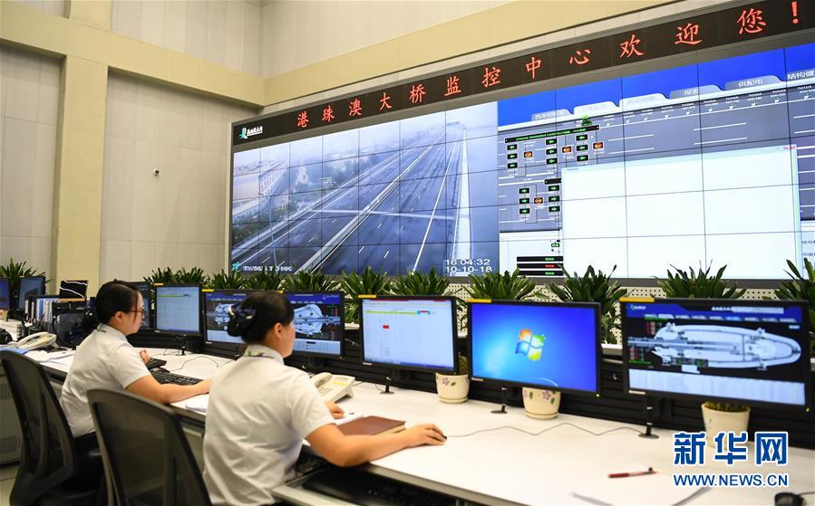 港珠澳大橋監控中心(2018年10月10日攝)。 金秋十月,伶仃洋上海天一色、潮聲陣陣,依傍著這片中國南海水域的城市群迎來深具意義的一天。 10月23日上午,港珠澳大橋開通儀式在廣東珠海舉行,中共中央總書記、國家主席、中央軍委主席習近平出席儀式,宣布大橋正式開通。 碧波之上,一橋飛架香港、澳門、珠海三地,以氣貫長虹的“中國跨度”,飛越滄海百年的歷史風云,展現當代中國的雄健風采。 新華社記者鄧華攝