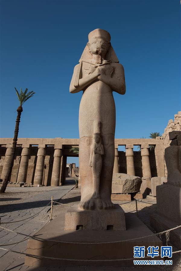 這是10月23日在埃及盧克索拍攝的卡納克神廟內的石像。新華社記者 孟濤 攝