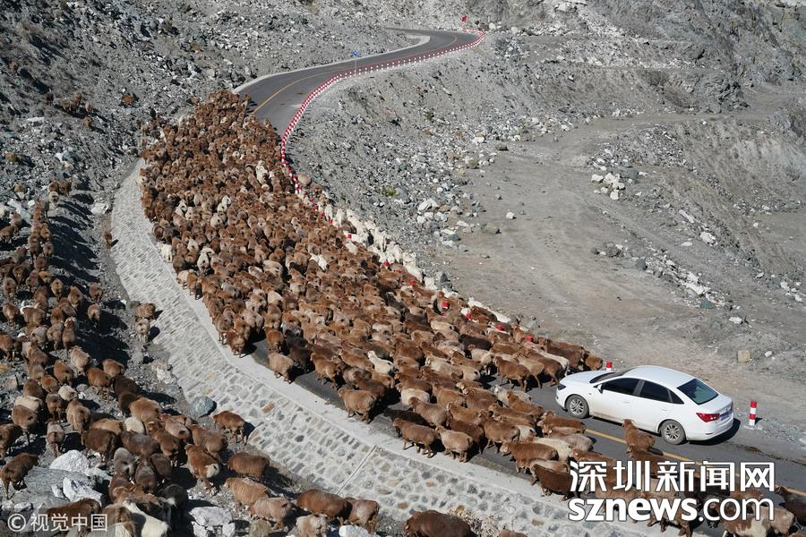 車輛不得不停下來,仿佛被無窮無盡的羊群吞沒了,場面非常壯觀。
