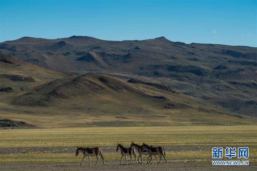 在西藏阿里地區(qū)境內(nèi)拍攝的國家一級保護(hù)動物藏野驢(9月8日攝)。 阿里地處西藏西部,平均海拔4500米以上,面積30多萬平方公里,羌塘國家級自然保護(hù)區(qū)幾乎涵蓋整個阿里地區(qū),是眾多野生動物生活的樂園。 新華社記者 普布扎西 攝