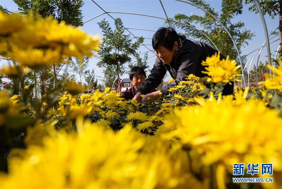 10月30日,武安市午汲鎮東河下村村民在采摘菊花。 新華社記者 王曉 攝