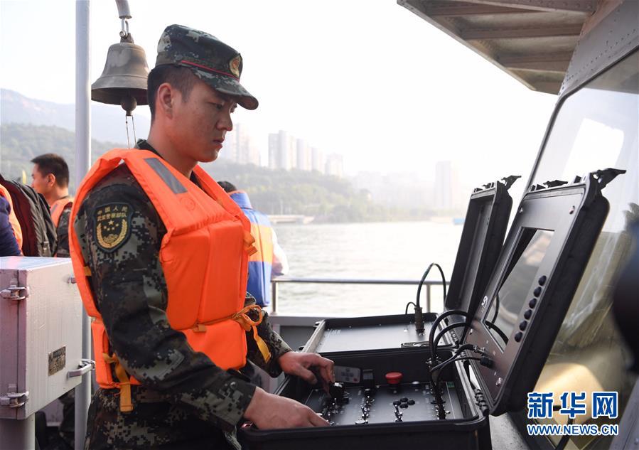 2018年10月29日,武警重慶總隊船艇支隊官兵使用水下機器人搜尋。