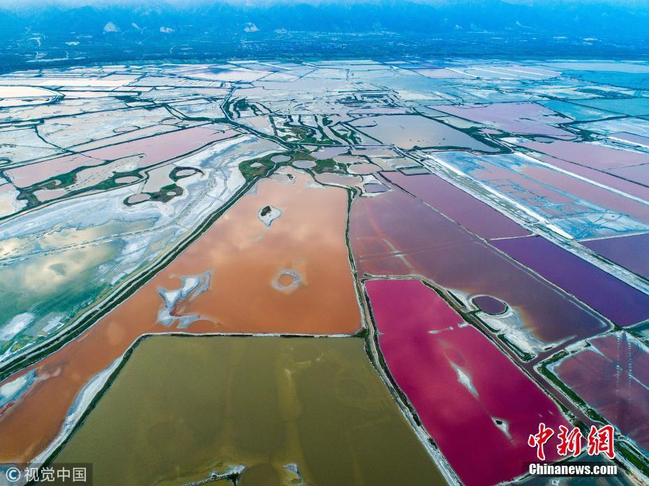 10月6日,山西省運城鹽湖景區鹽湖秋日美景。入秋以來,隨著氣溫的改變,山西省運城鹽湖泛起出色彩斑斕、美不勝收的秋天特有的七彩景致,非常迷人。尚建周 攝 圖片來源:視覺中國