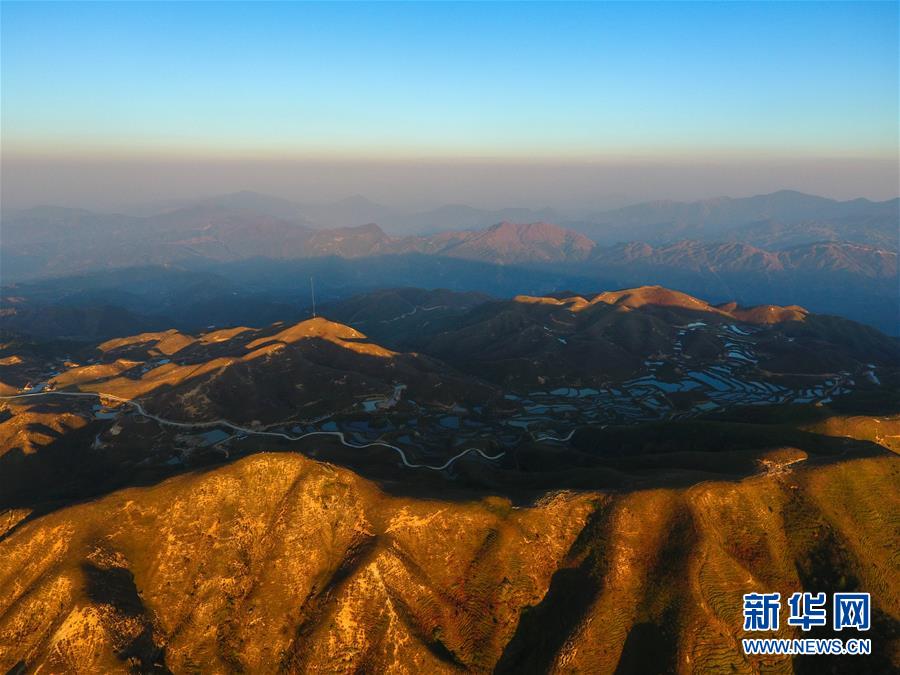 夕陽下的摩天嶺草場(11月2日無人機拍攝)。金秋時節,廣西融水苗族自治縣桿洞鄉堯告村的摩天嶺草場天高云淡,景色迷人。新華社記者周華攝