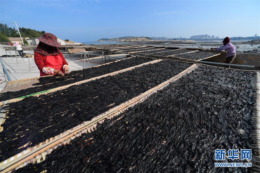 10月24日,福建莆田蔣山村村民在曬紫菜。 新華社記者張國俊 攝
