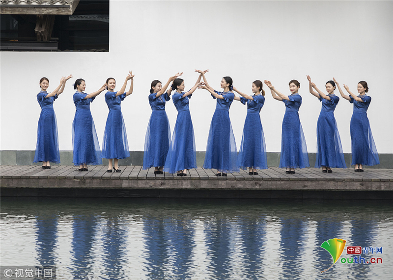 2018年11月5日,浙江嘉興,大會(huì)志愿者“小梧桐”爭(zhēng)分奪秒,在烏鎮(zhèn)展開緊張的實(shí)戰(zhàn)培訓(xùn)。阿凡提達(dá)/視覺中國(guó)