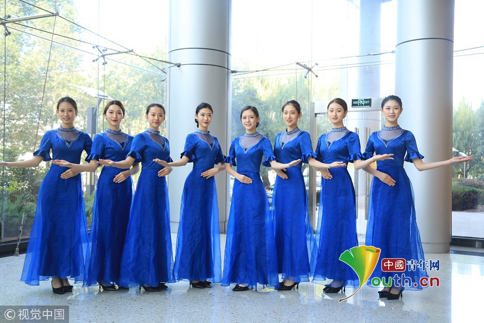 2018年10月15日,杭州,第五屆世界互聯(lián)網(wǎng)大會召開在即,來自浙江傳媒學院的禮儀志愿者們正在進行緊張有序的集中訓練。圖片作者:浙江日報 馮賀/視覺中國