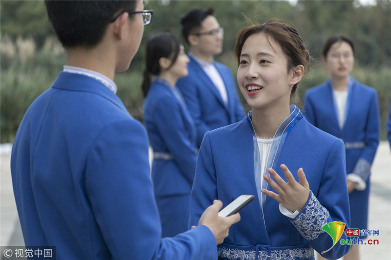 高顏值禮儀志愿者備戰(zhàn)第五屆世界互聯(lián)網(wǎng)大會