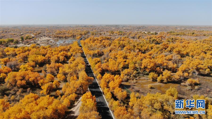 新疆尉犁縣胡楊林深處的一條小路(10月25日攝)。 10月中下旬,靜靜的塔里木河中下游一片金黃。胡楊深處,條條小路蜿蜒綿長(zhǎng)通向遠(yuǎn)方,引人入勝。 塔里木河是中國(guó)最長(zhǎng)的內(nèi)陸河,這一區(qū)域原始胡楊林分布較為集中。隨著塔里木河連續(xù)19次向下游生態(tài)輸水,為胡楊林“解渴”,塔河兩岸生態(tài)得到明顯改善,沙地面積逐年減少。 新華社記者趙戈攝