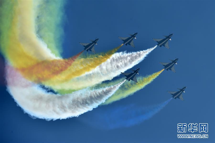 11月6日,中國空軍八一飛行表演隊在航展現場進行飛行表演。當日,第十二屆中國國際航空航天博覽會在珠海開幕。 新華社記者梁旭攝