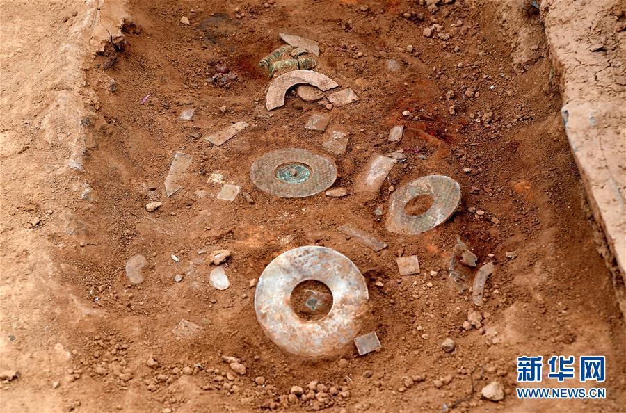 這是洛陽發現的西漢大墓棺內的陪葬器物(11月7日攝)。 新華社記者李安攝
