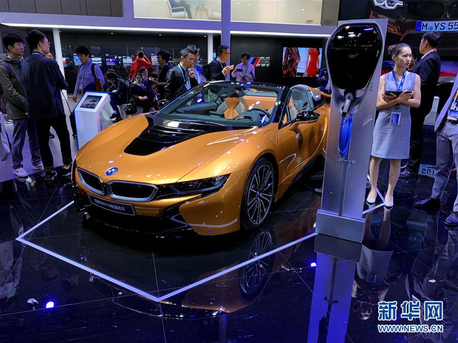 這是11月7日在汽車展區拍攝的寶馬i8混合動力跑車。新華社記者 牛曉雷 攝
