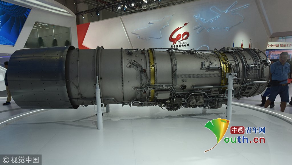 觀眾在觀看國(guó)產(chǎn)新型渦扇發(fā)動(dòng)機(jī)“太行發(fā)動(dòng)機(jī)”。