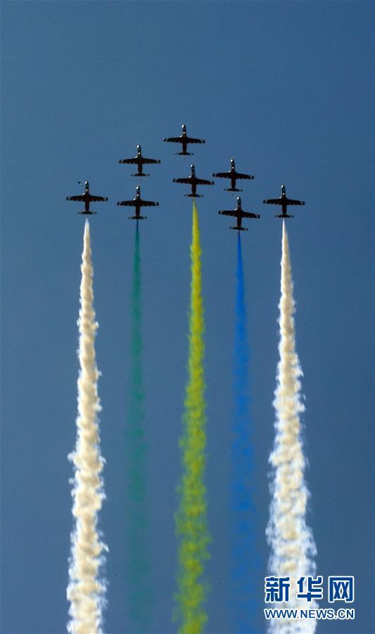 11月6日,空軍航空大學“紅鷹”飛行表演隊在航展現場進行飛行表演。當日,第十二屆中國國際航空航天博覽會在珠海開幕。 新華社記者劉芳攝