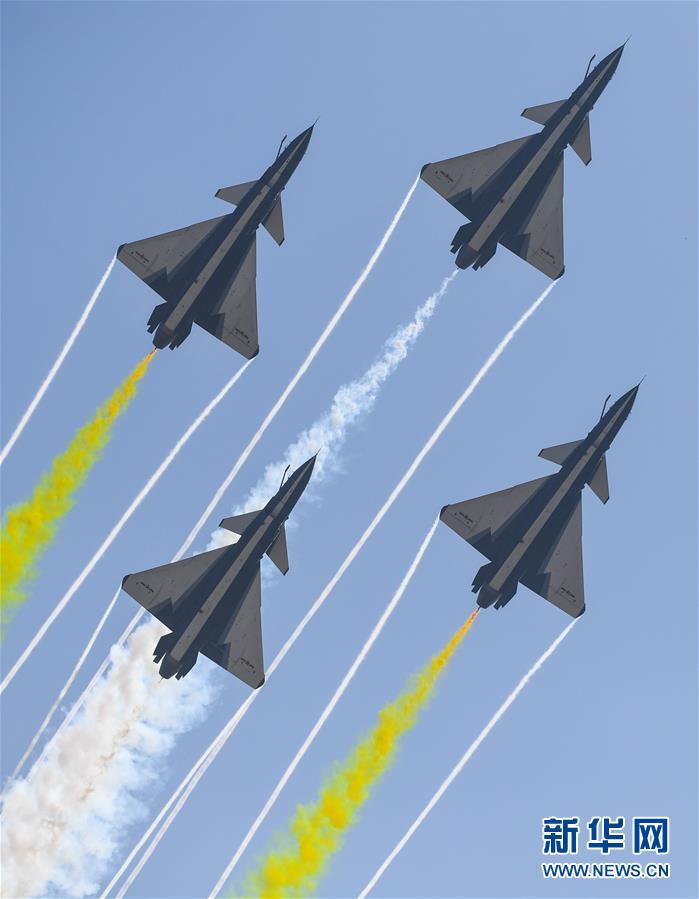 11月6日,中國空軍八一飛行表演隊在航展現場進行飛行表演。當日,第十二屆中國國際航空航天博覽會在珠海開幕。 新華社記者鄧華攝