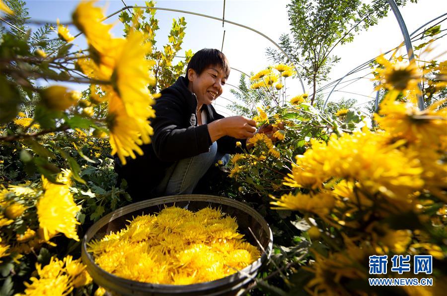 10月30日,武安市午汲鎮東河下村村民在采摘菊花。 新華社記者 王曉 攝