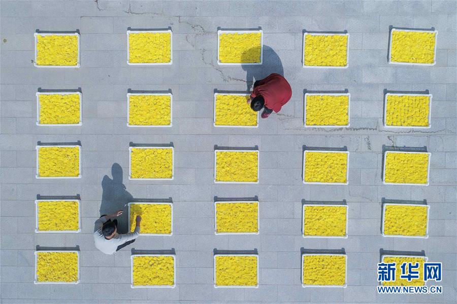 10月30日,武安市午汲鎮東河下村村民在晾曬菊花。 新華社記者 王曉 攝