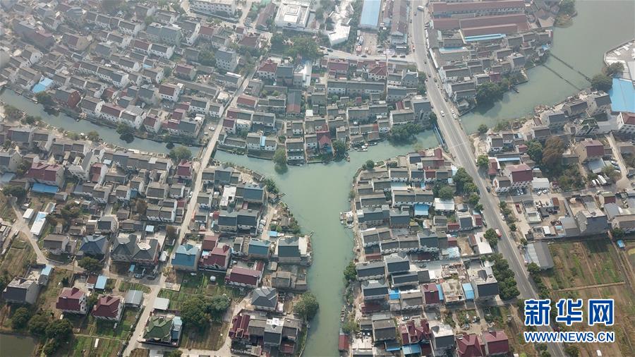 蘇州市吳江區七都鎮開弦弓村村貌(10月23日無人機拍攝)。近年來,開弦弓村形成了化纖紡織、針織衫編織和水產養殖三大產業,2017年村集體收入268萬元,農民人均可支配收入3萬多元。