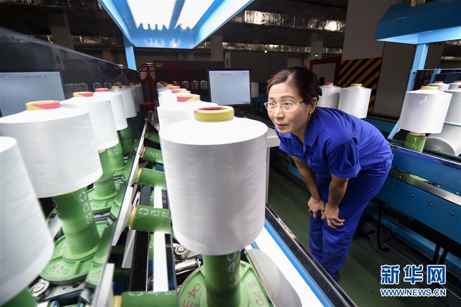 蘇州市吳江區(qū)盛澤鎮(zhèn)一家絲綢公司的工人在車間進行絡(luò)絲作業(yè)(2017年5月20日攝)。 新華社記者 李響 攝