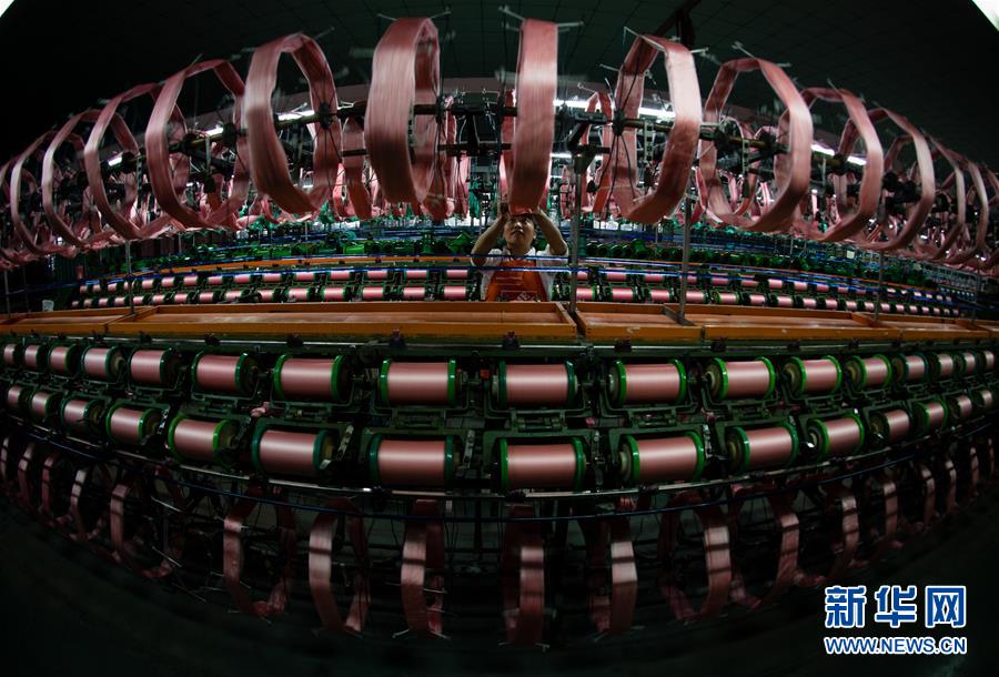 蘇州市吳江區盛澤鎮一家絲綢公司的工人在車間進行絡絲作業(2017年5月20日攝)。 新華社記者 李響 攝