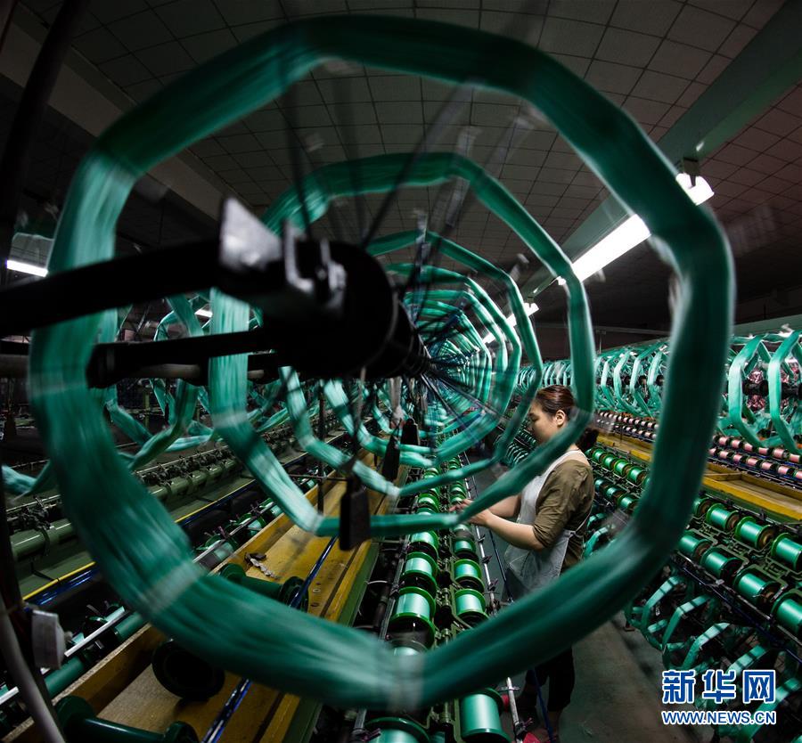 蘇州市吳江區盛澤鎮一家絲綢公司的工人在車間進行絡絲作業(2017年5月20日攝)。 新華社記者 李響 攝