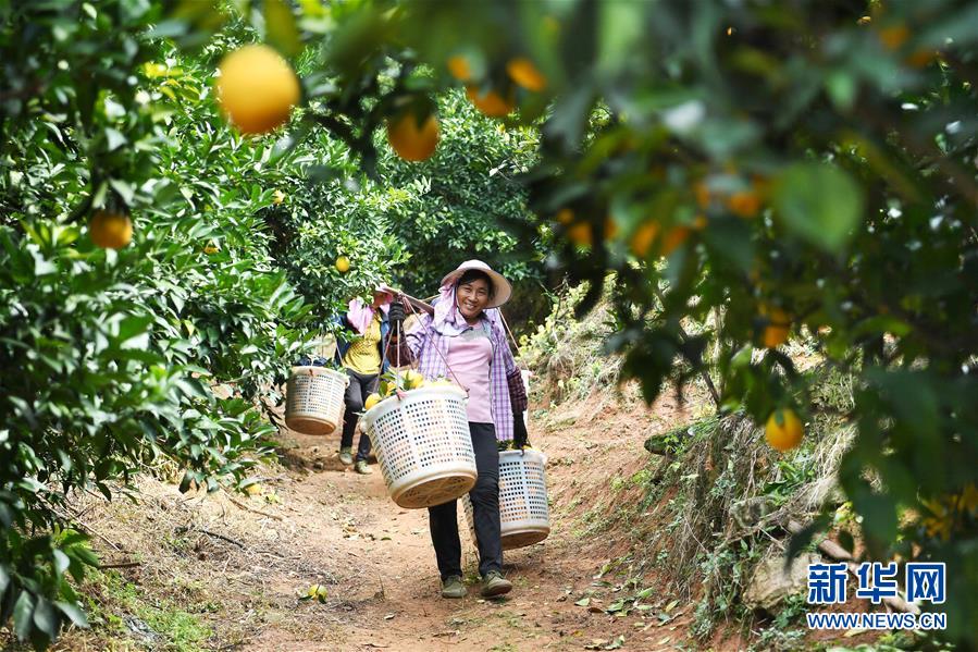 近日,江西省贛州市尋烏縣近20萬畝果園進入豐收采摘期,當地果農抓住晴好天氣開始采摘臍橙,果園一派繁忙景象。新華社記者 萬象 攝