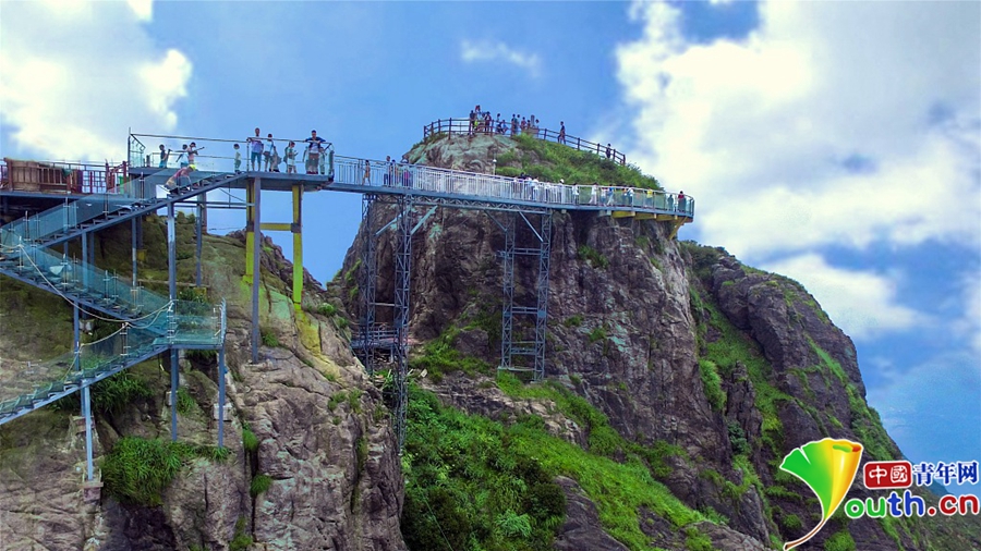 經過一年的建設,位于素有“嶺南第一險峰”與“南粵小華山”之稱的廣東清遠連山金子山,有一條玻璃天梯建成。下個月10日,玻璃天梯將正式對游客開放。
