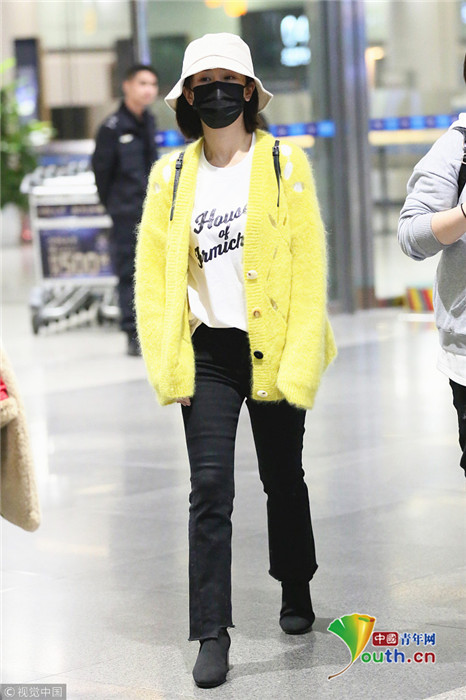日前,楊紫現身長沙黃花機場,她頭戴漁夫帽的她口罩遮面,身著鮮黃針織衫相當搶眼,一路獲粉絲跟拍。