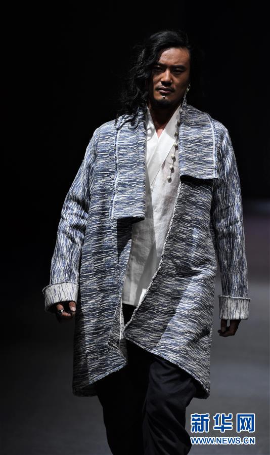 模特在AJ-NAMO藏裝秀上展示藏族設計師阿佳娜姆設計的時裝(11月18日攝)。 新華社記者 普布扎西攝