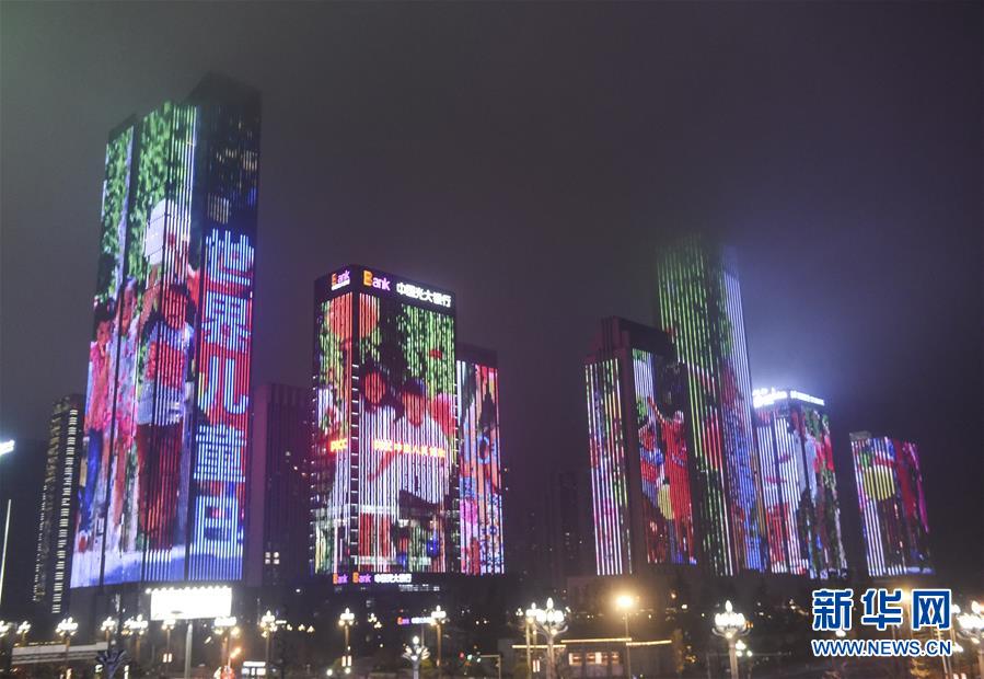 11月20日,貴陽市舉辦世界兒童日主題活動,觀山湖區金融城的大樓被點亮。 新華社記者 陶亮 攝
