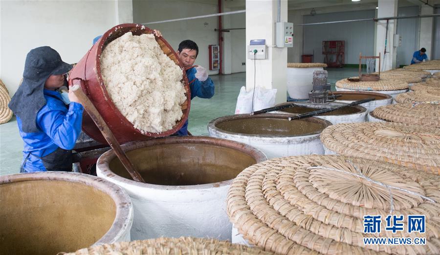11月21日,工作人員在紹興女兒紅釀酒有限公司釀酒廠房將剛煮熟的糯米落缸。 浙江紹興一帶有“生女釀好酒、婚嫁宴賓客”的習俗,所釀之酒稱“女兒紅”。在紹興市上虞區東關街道,一家釀酒廠仍保留著傳統的黃酒生產線,恪守著近20道釀造工序,延續著傳統黃酒的釀制技藝和生女必釀“女兒紅”的文化習俗。 黃酒是中國最古老的酒種之一,傳統黃酒僅在冬季取鑒湖水和糯米釀制,所得之酒澄澈馥郁。 新華社記者翁忻旸攝