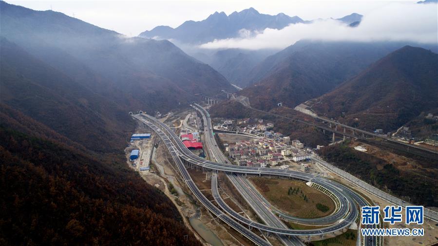 11月20日拍攝的水陽高速公路與包茂高速公路相接的樞紐互通式立交(無人機拍攝)。 近日,記者從陜西省交通建設集團公司了解到,陜西柞水至山陽高速公路已全線貫通即將通車。據介紹,(柞)水(山)陽高速公路全長78.8公里,開通后將實現包茂高速、福銀高速在陜南商洛地區的連接,開辟出秦嶺南麓的一條橫向高速大通道,對完善陜西高速公路路網結構、促進陜南區域經濟發展、加快山區群眾脫貧致富具有重要意義。 新華社記者劉瀟攝